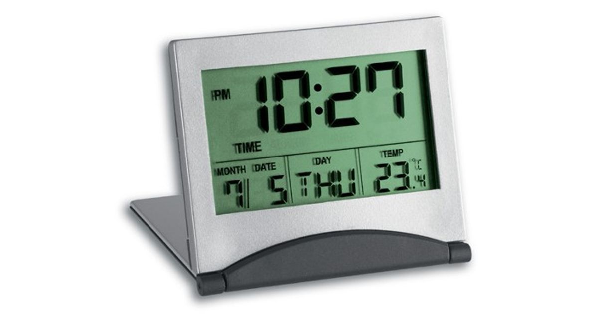 TFA-Dostmann 98.1054, Digitaalne äratuskell, Hall, Hõbe, 12/24 h, F, °C, Mõlemad sood, LCD