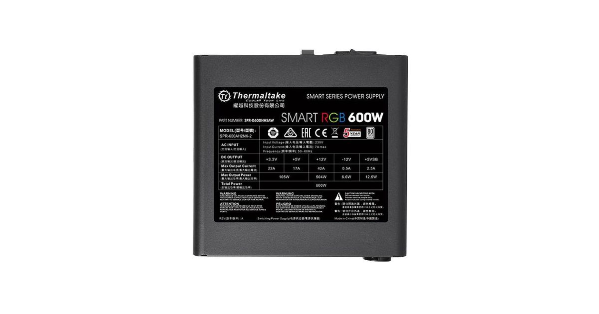 Thermaltake Smart RGB, 600 W, 230 V, 50 - 60 Hz, 7 A, Aktiivne, 105 W