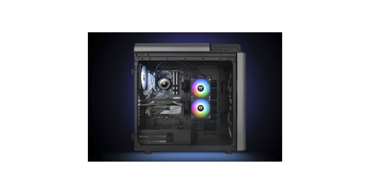 The TH240 V2 ARGB Sync All-In-One water cooling system has an industrial design pump cap and is equipped with two CT120 ARGB fans. It is suitable for small enclosures that can fit 240 mm AIOs.