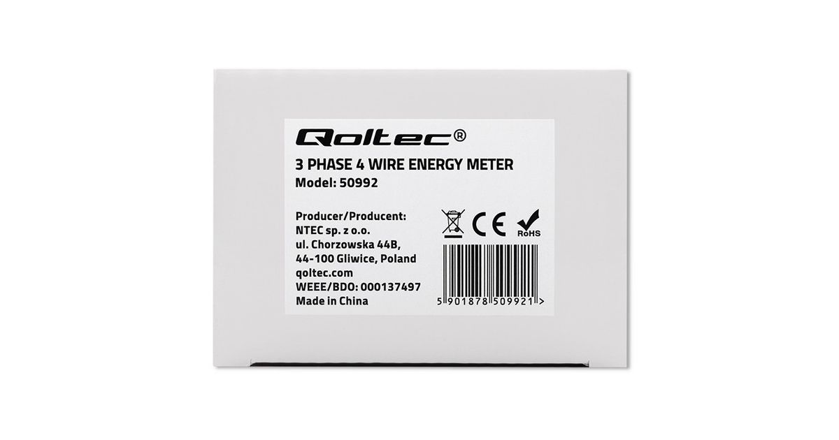 The Qoltec power consumption meter is not only an accurate tool for monitoring energy consumption, but also a compact and easy to use device. Thanks to its small size, installation is extremely easy and fast, making it ideal for both domestic and larger industrial applications. LCD display provides clear and accurate data on energy consumed, which allows for effective management of energy consumption and identification of potential savings. Counter can be used In domestic installations as well as in industrial plants.