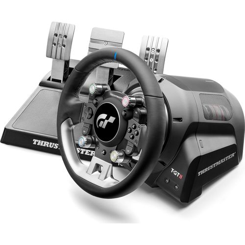 Thrustmaster T-GT II Volant + pedalier 4160823, Juhtpult + pedaalid, PC, PlayStation 4, PlayStation 5, Juhtmega ühendatud, USB, Must, Satiinviimistlusega teras, Vahelduvvool