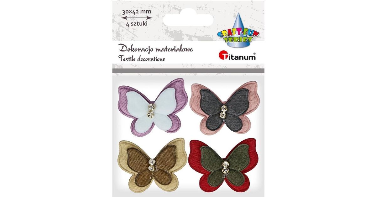 Titanum Aplikacje materiałowe motyle z cyrkonią 4szt