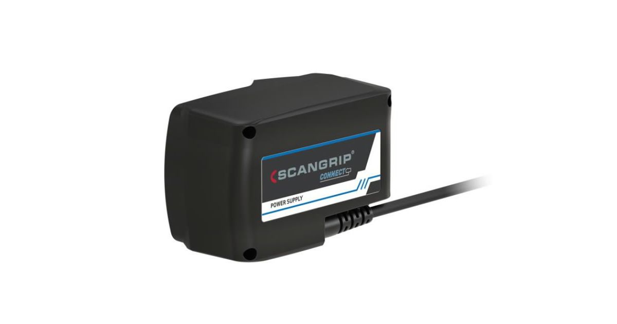 Toiteadapter, mis võimaldab Scangrip CONNECT valgustid muuta juhtmega valgustiks.