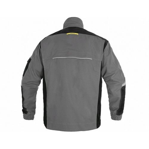 Tööjakk STRECH tootesarjast. 98% puuvill. 2% elastaan. 250 g/m2 (kanga tihedus) on hingavast. venivast. kergest ja mugavast kangast. mis annab kasutajale palju parema liikumisvabaduse. Kulumiskindluse suurendamiseks on enim kuluvatel kohtadel nagu õlaosadel. küünarnukkidel. varruka- ja taskuäärtel kasutatud tugevat polüesterkangast 600D. Krae sees pehme materjal. 5 funktsionaalset taskut. Ees tõmblukk. mis kaetud trukk-kinnituse esiliistuga. Randmeosad ja alt äär reguleeritavad trukk-kinnitusega. Selja alaosa pikendatud. Dekoratiivsed helkurribad varrukatel ja seljal. CE (EU) 2016/425