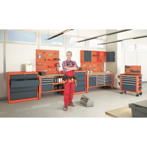 Tugeva terasraamiga. 3-sahtliga (lukustatavad). Raami jalgadel kõrguse reguleering ja võimalus põranda külge ankurdada. Kõrgsurvepressitud niiskuskindlast vineerist lauaplaadiga. plaadi paksus 40 mm. “Modular” konstruktsiooniga - võimalik laudu omavahel jooksvalt ja ka nurga all liita ja kombineerida. Kandevõime 600 kg. Kõrgus 850-900 mm. laius 1765 mm. sügavus 620 mm.