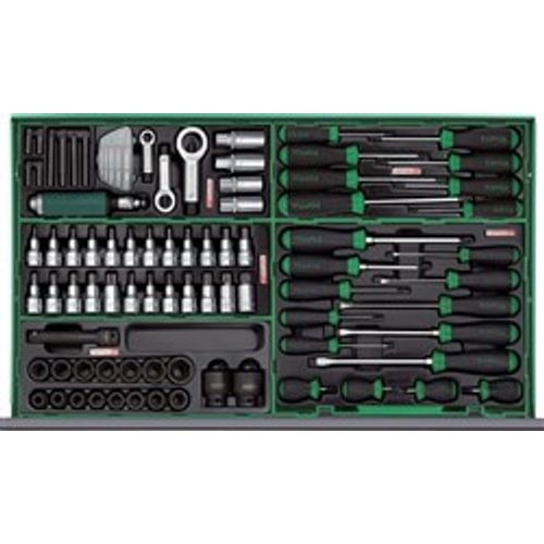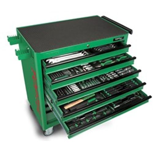 Tööriistakäru/ kast koos varustusega, tööriistade arv: 360 tk, kõigi sahtlite arv: 8, sahtli tüüp: A1, B2, C1, plastist, värv: roheline, seeria: JUMBO, 857/995/862/498 mm