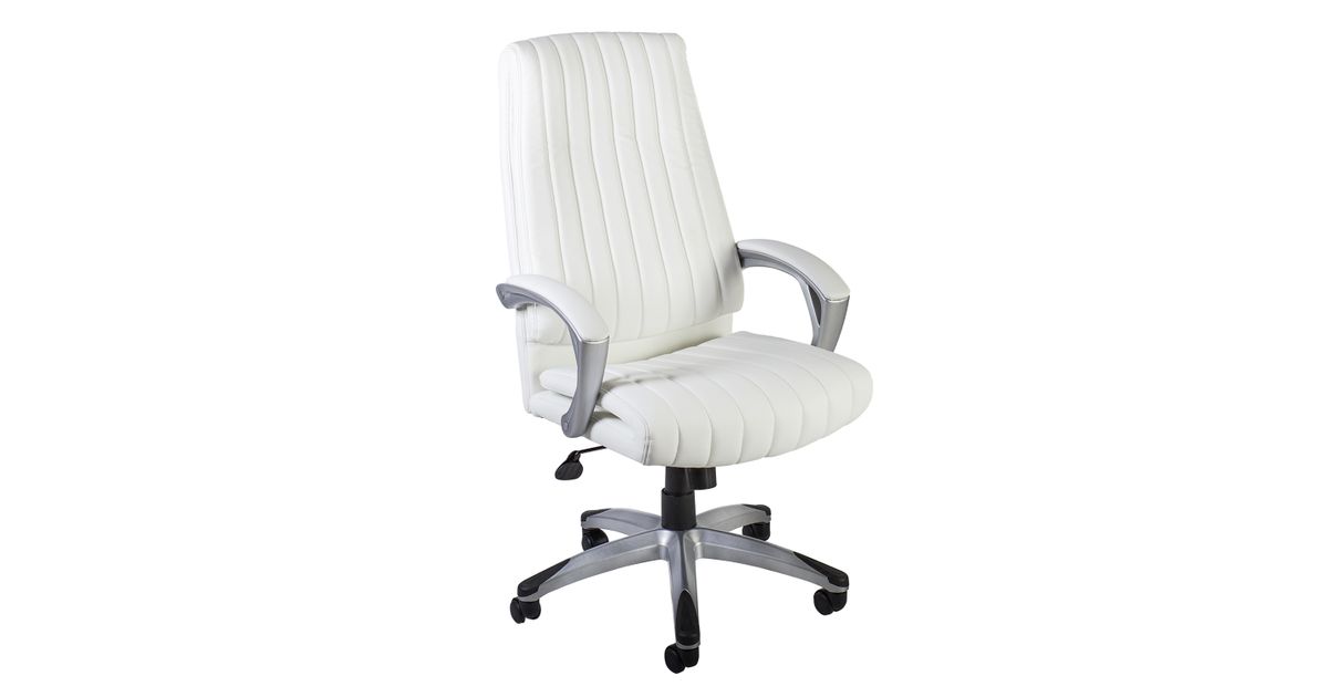 Kattematerjal: kunstnahk, värvus: valge. Raami värvus: hõbedane. Mehhanism ja seadistused: sünkroonmehhanism, kiike jäikus reguleeritav vastavalt istuja kaalule, istme kõrgus reguleeritav gaasamordi abil. Käetoed: materjal: plastik, polsterdatud kunstnahaga. Jalarist: plastikrist, värvus: hõbedane. Rattad: plastikrattad, tihvt: 11mm. Mõõtmed: kõrgus 112 - 119,5cm. Lisainfo: kaalupiirang 120kg.