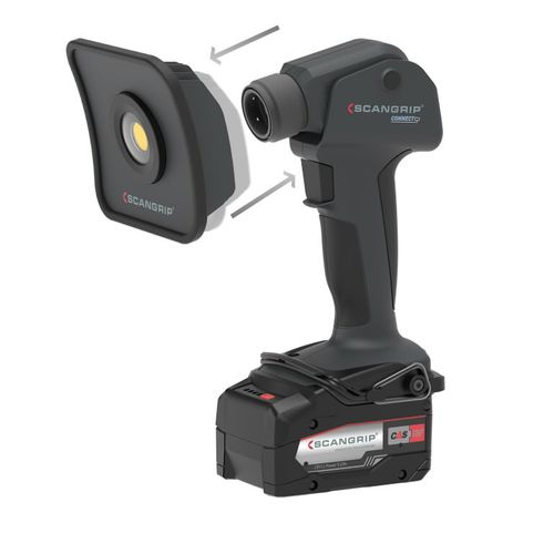 Battery: Compatible with METABO / CAS battery system 18V and all other 18 V/20 V battery packs by using the SCANGRIP CONNECTOR.