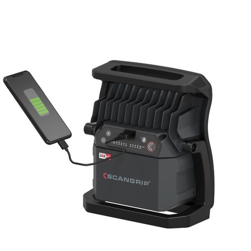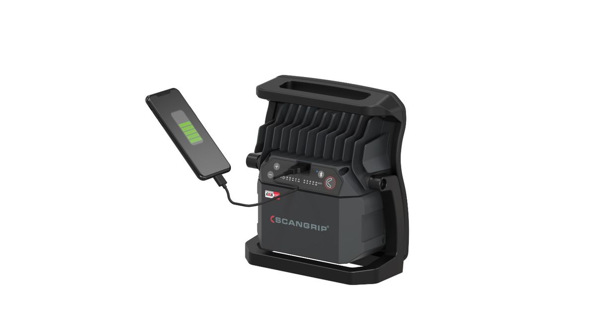 With the user-friendly BLUETOOTH light control app, you get an extraordinary possibility to turn on/off and control up to four work lights through a mobile device. The built-in dimmer function enables you to adjust the light output into five different levels. This feature saves time from manual operation and increases work efficiency on a daily basis. It is designed with a display for battery capacity and lumen output level, and supplied with a built-in power bank.
