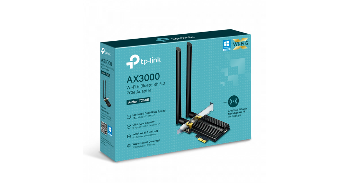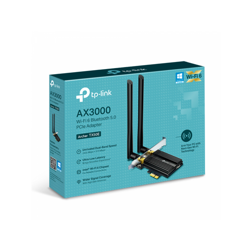 TP-Link Archer TX50E, Juhtmevaba, PCI Express, WLAN / Bluetooth, Wi-Fi 6 (802.11ax), 2402 Mbit/s, Must, Metallik