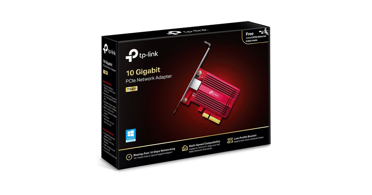 TP-LINK TX401, Sisemine, Juhtmega ühendatud, PCI Express, Ethernet, 10000 Mbit/s, Punane