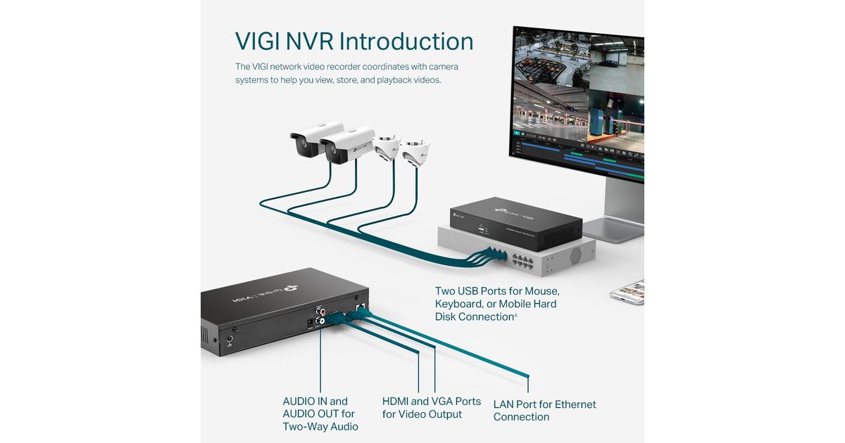 TP-Link VIGI NVR1008H, 8 kanalid, 1920 x 1080 pikslit, 4 kanalid, 1080p, 1920 x 1080, 1280 x 720, 1440 x 900, 1280 x 1024, 80 Mbit/s