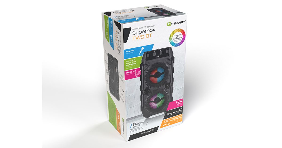 Tracer TRAGLO46612, 10 W, Juhtmevaba, Stereo kaasaskantav kõlar, Must, Mobiiltelefon/nutitelefon, Patarei