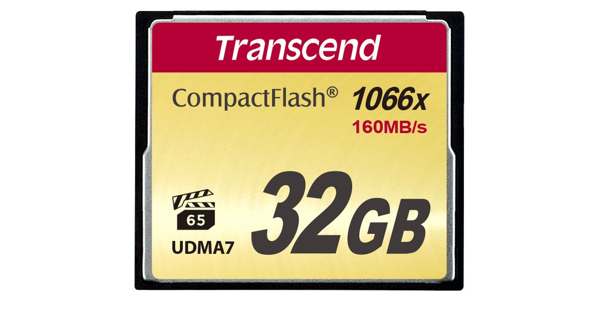 Transcend 1000x CompactFlash 32GB, 32 GB, CompactFlash, MLC, 160 MB/s, 120 MB/s, Must