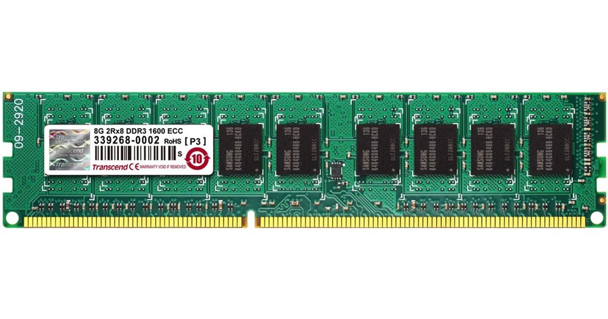 Transcend 8GB DDR3 1600MHz ECC-DIMM 11-11-11 2Rx8, 8 GB, 2 x 8 GB, DDR3, 1600 MHz, 240-pin DIMM