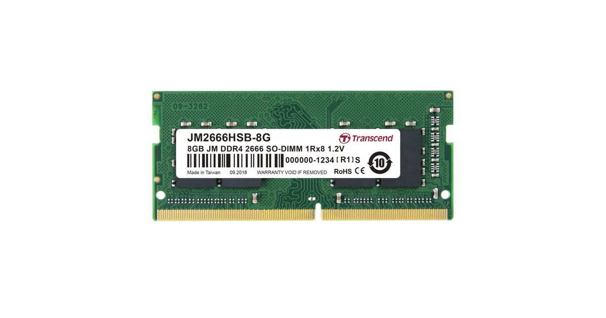 Transcend JM2666HSB-8G, 8 GB, 1 x 8 GB, DDR4, 2666 MHz, 260-pin SO-DIMM