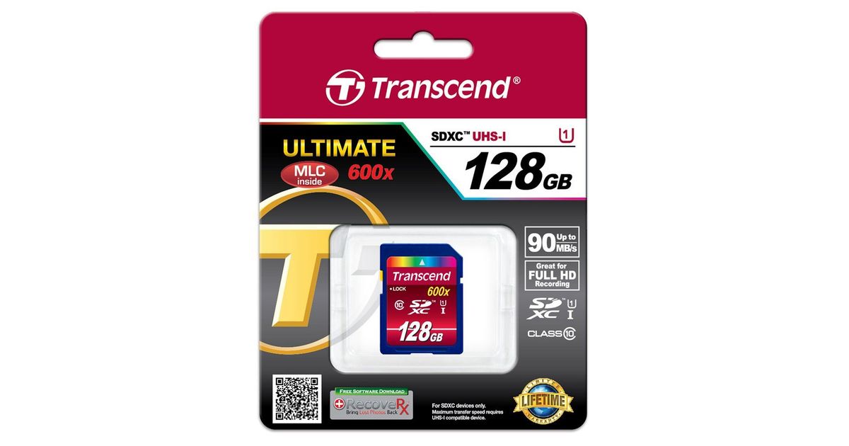 Transcend TS128GSDXC10U1, 128 GB, SDXC, Klass 10, MLC, 90 MB/s, Class 1 (U1)