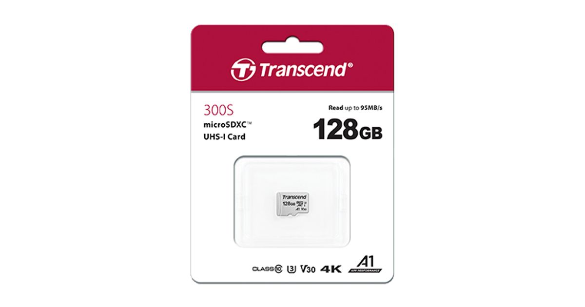 Transcend TS128GUSD300S-A, 128 GB, MicroSDXC, Klass 10, NAND, 95 MB/s, 40 MB/s