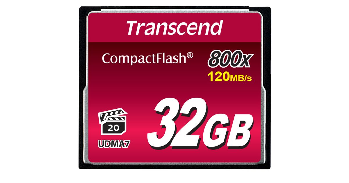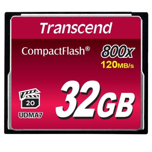 Transcend TS32GCF800, 32 GB, CompactFlash, MLC, 120 MB/s, 60 MB/s, Must
