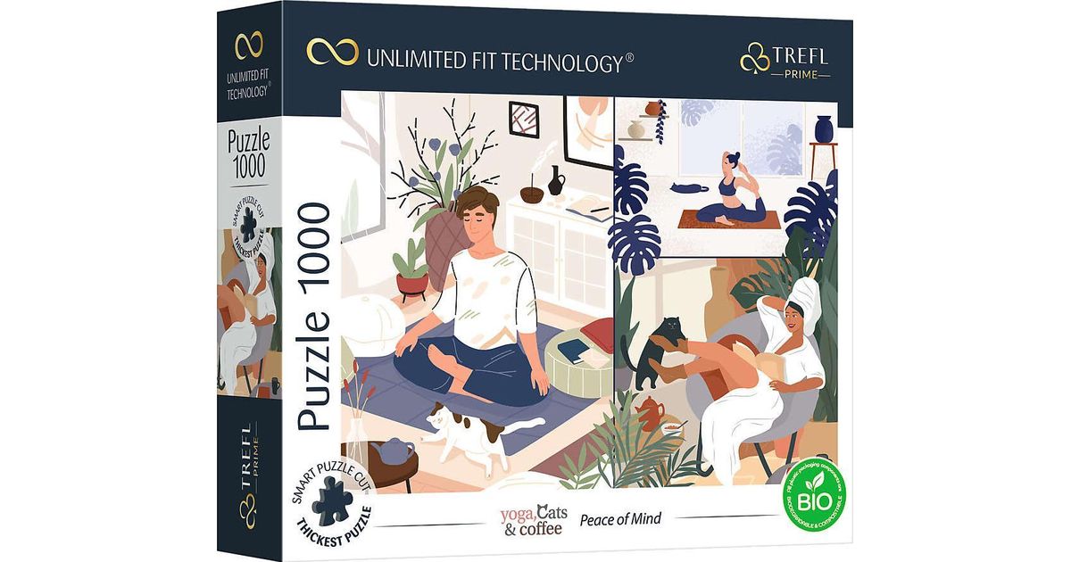 • Trefl Puzzle 1000 Peace of Mind Unlimited Fit Technology, jooga, kohv ja kassid pealkirjaga
