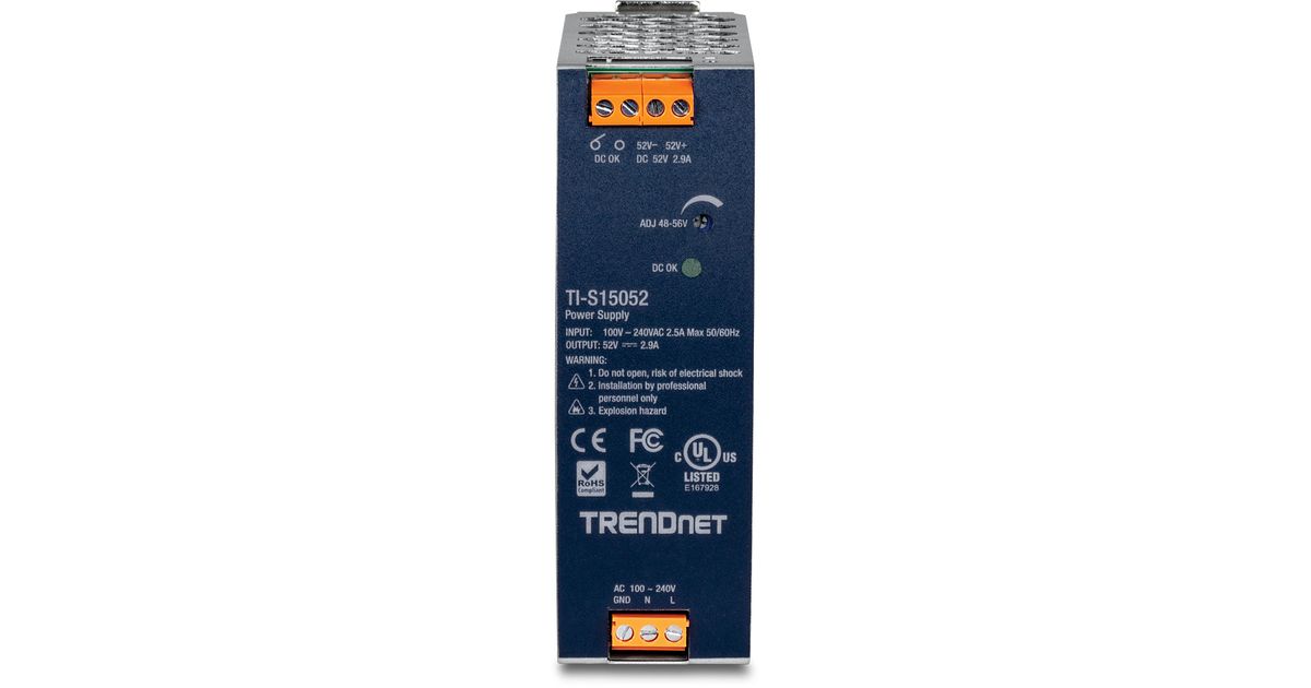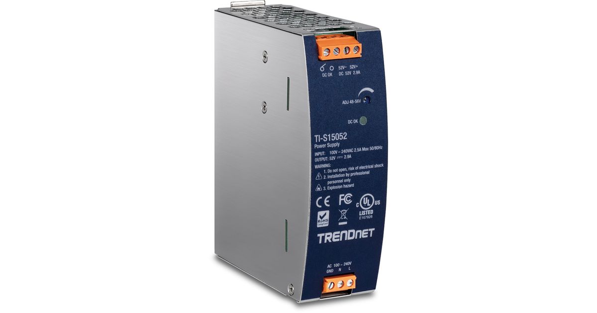 Trendnet TI-S15052, Toiteplokk, Must, Ülevool, Ülevõimsus, Ülepinge, Ülekütmine, Lühis, 200000 h, FCC UL 62368 CB IEC 62368, 150 W
