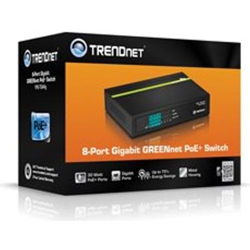 TRENDnet’s 8-Port GREENnet Gigabit PoE+ Switch, model TPE-TG44g, reduces equipment and installation costs by delivering data and power over existing Ethernet cables. This unmanaged switch offers four Gigabit PoE+ and four Gigabit non-PoE ports. The PoE+ standard supplies up to 30 watts of power per port for devices such as high power wireless access points, PTZ (Pan Tilt Zoom) Internet cameras, and VoIP telephony systems.