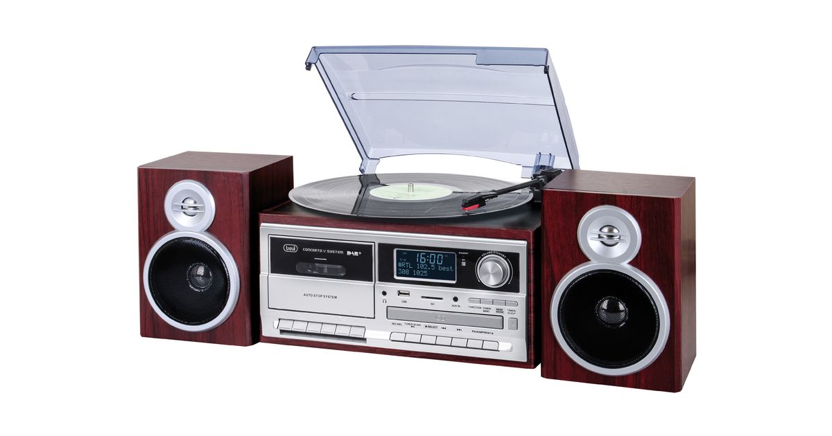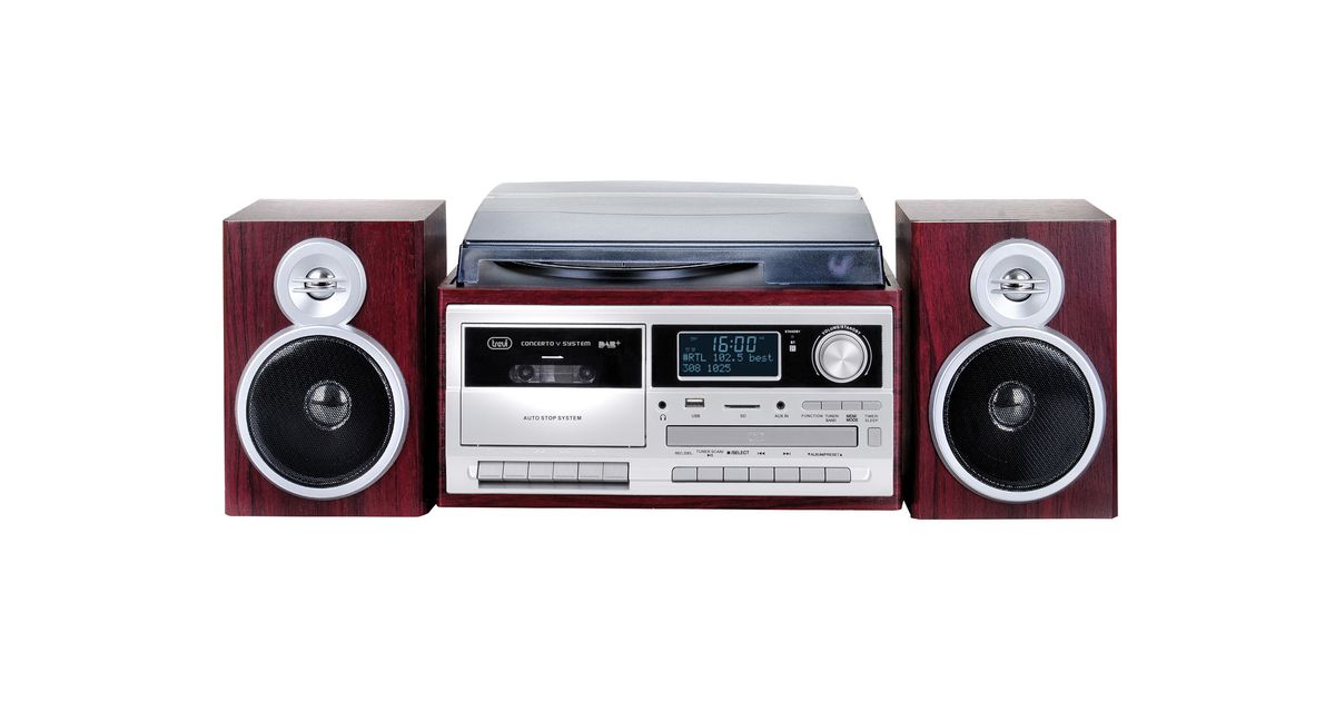 Trevi TT 1072 DAB, Direct-drive vinüülplaadimängija, Poolautomaatne, Puit, 33,45,78 RPM, Pöörlev, CD, Kassett, Raadio, Vinüülplaat