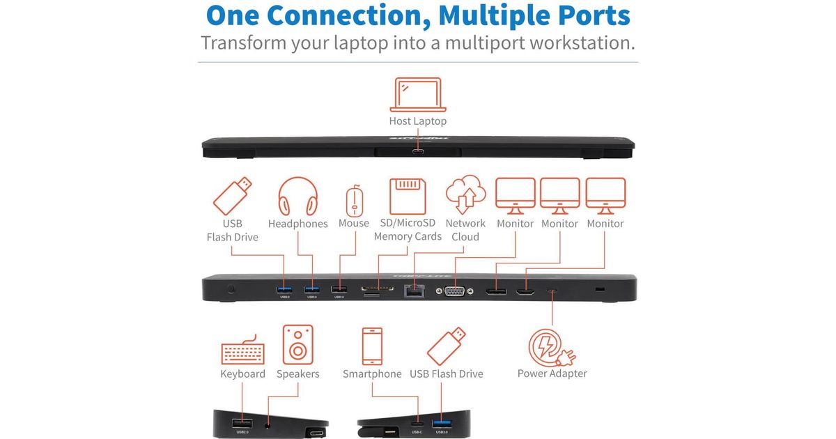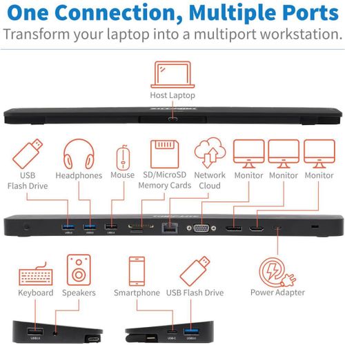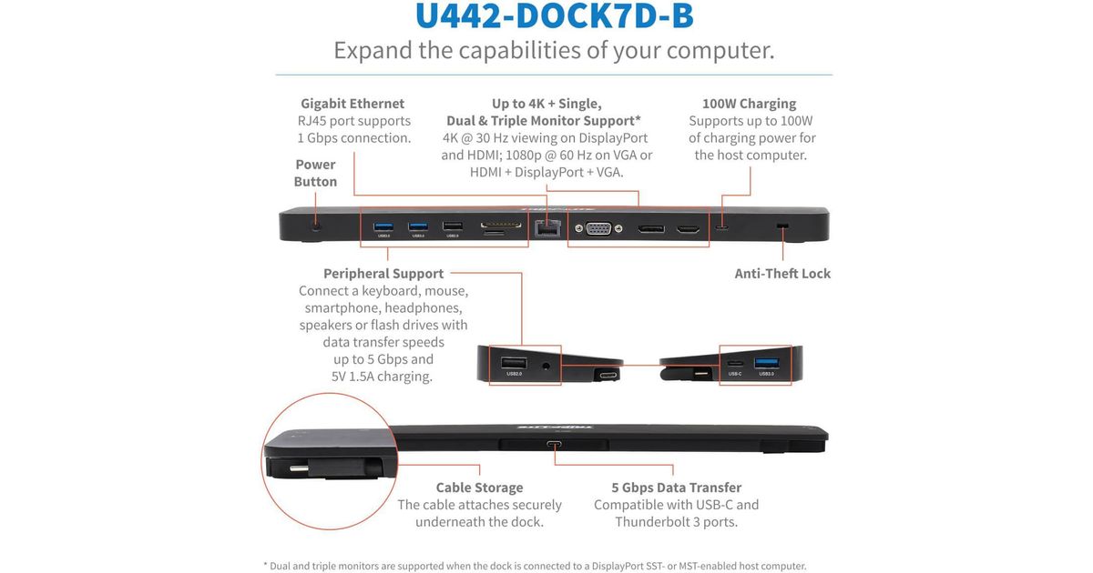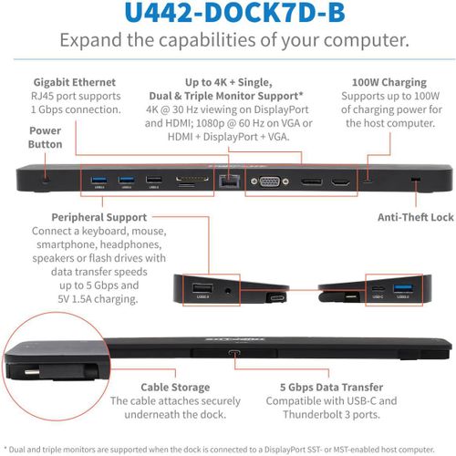 Tripp Lite Triple-Monitor USB C Dock USB C Docking Station with 4K HDMI & DisplayPort, VGA - USB-A/C, GbE, 100W PD, Black - Dockingstation - USB-C 3.1 / Thunderbolt 3 - VGA, HDMI,