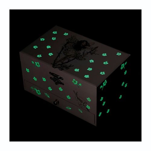 A music box for storing small treasures & secrets. With a middle drawer. Operate the crank and the figure comes to life to the sound of music as if by magic! Ideal from birth: beautiful timeless decoration of a child's room and introduction to classical music. Glows in the dark.