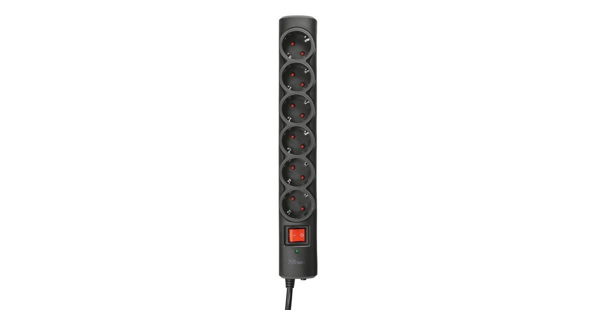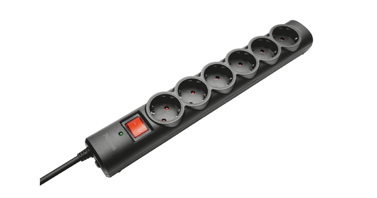 Trust 21059, 6 vahelduvvoolu kontakt, Tüüp F, Must, 1,8 m, 360 mm, 50 mm
