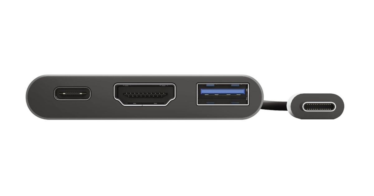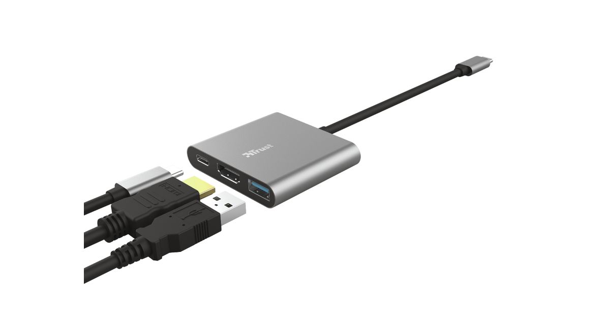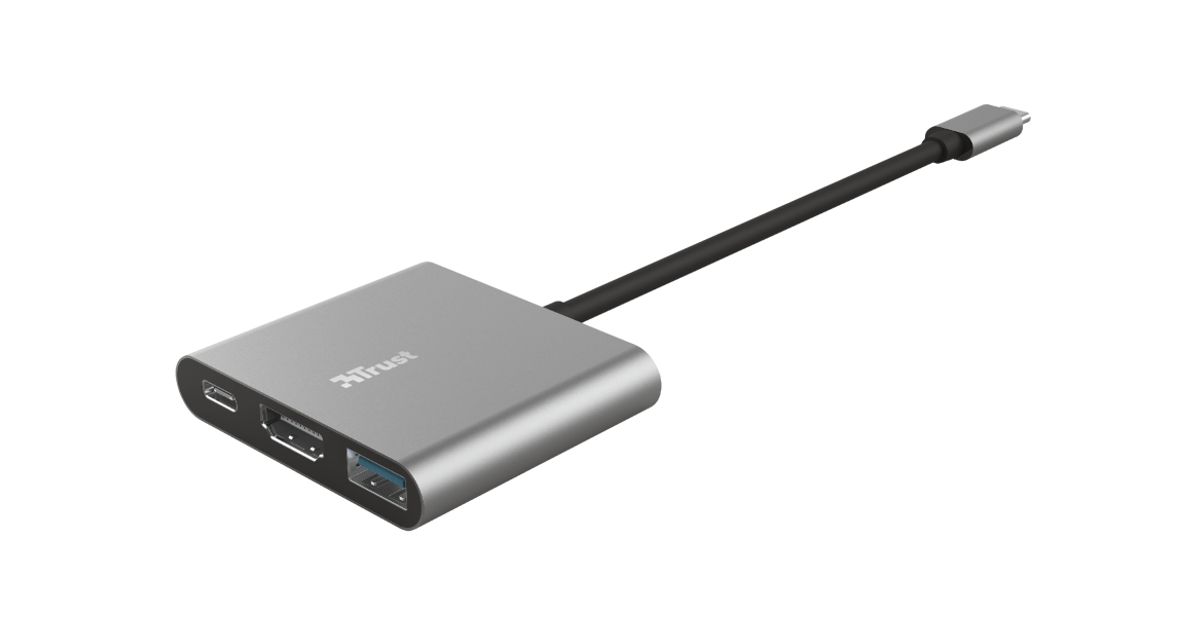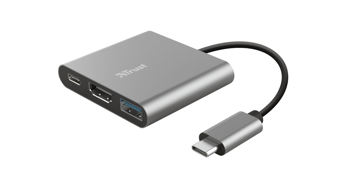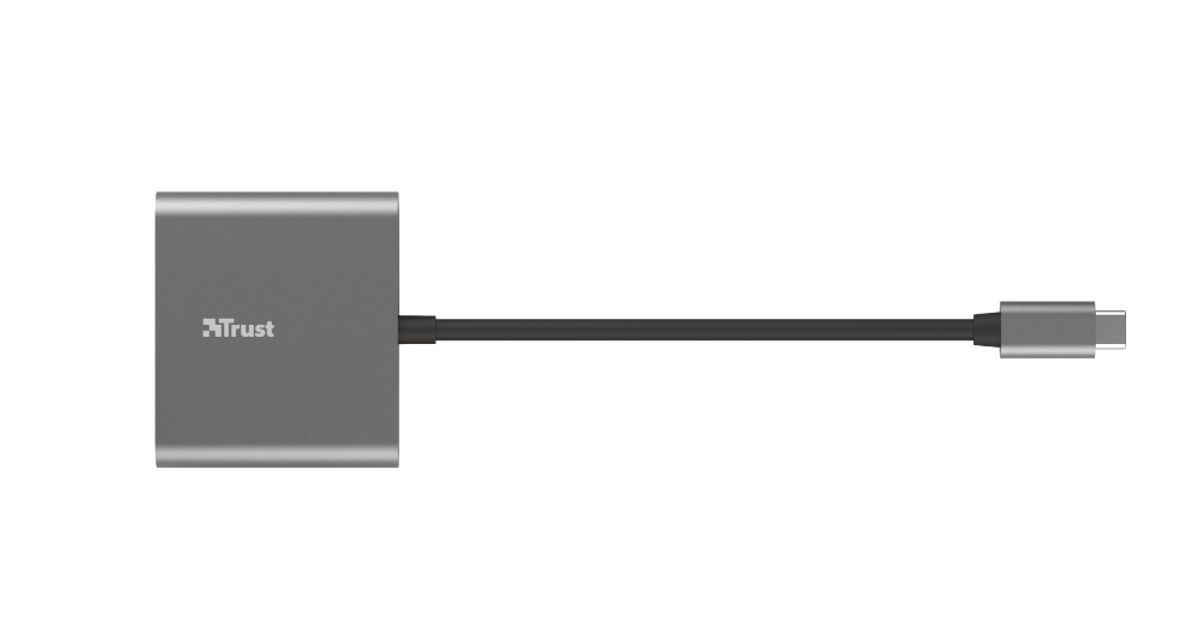 Trust Dalyx, USB 3.2 Gen 1 (3.1 Gen 1) Type-C, HDMI, USB 3.2 Gen 1 (3.1 Gen 1) Type-A, USB 3.2 Gen 1 (3.1 Gen 1) Type-C, 5 Mbit/s, Alumiinium, Must, Alumiinium, 0,1 m