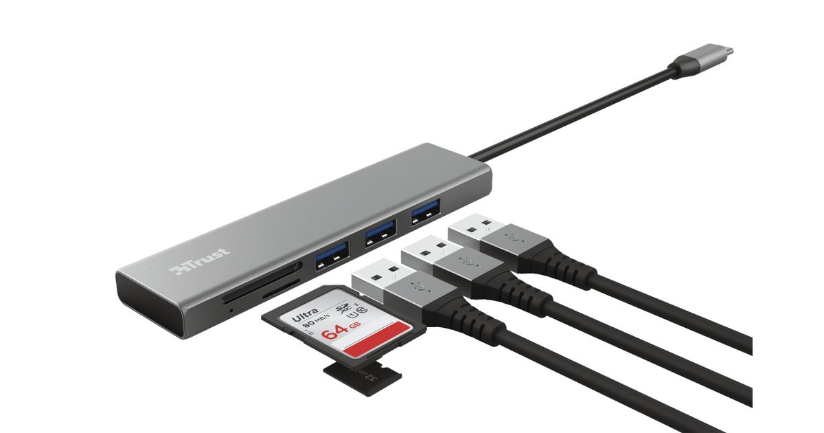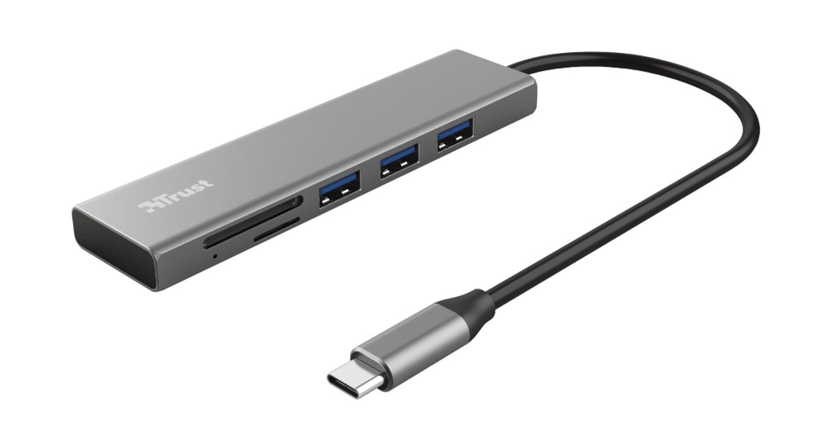 Trust Halyx, USB 3.2 Gen 1 (3.1 Gen 1) Type-C, USB 3.2 Gen 1 (3.1 Gen 1) Type-A, MicroSD (TransFlash), SD, SDHC, SDXC, 104 Mbit/s, Alumiinium, Alumiinium