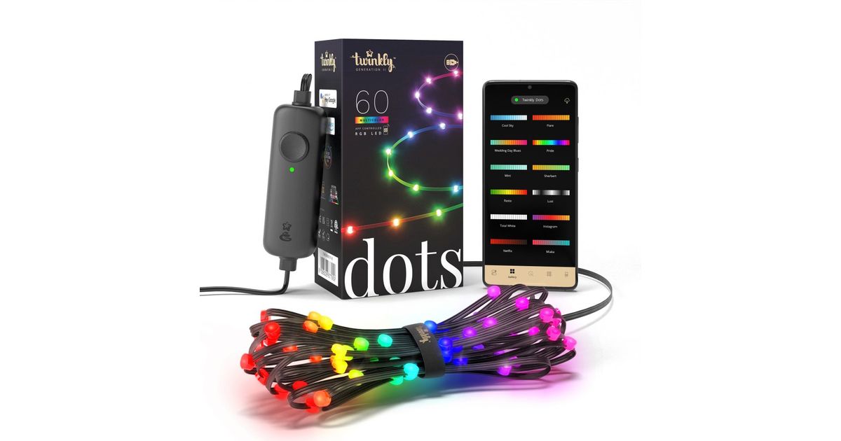 Twinkly Dots, Garland, Must, Ühevärviline, Pill-shaped, Sinine, Roheline, Punane, Must