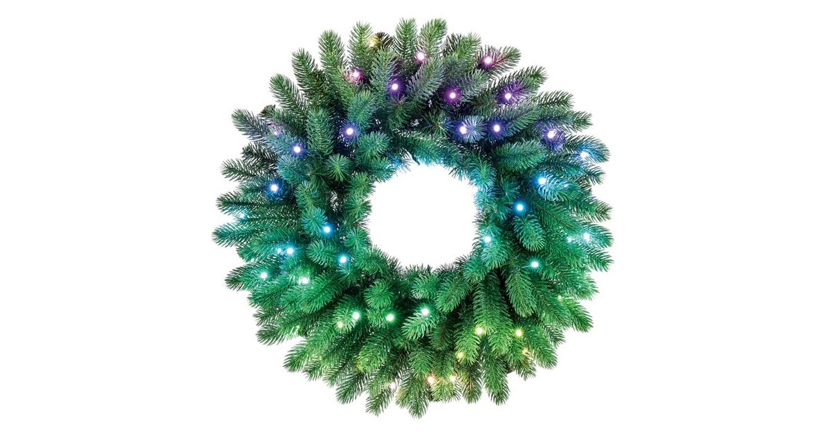 Twinkly Wstępnie oświetlony wieniec – 50 RGB LED, Regal 24" zielony przewód, typ wtyczki C