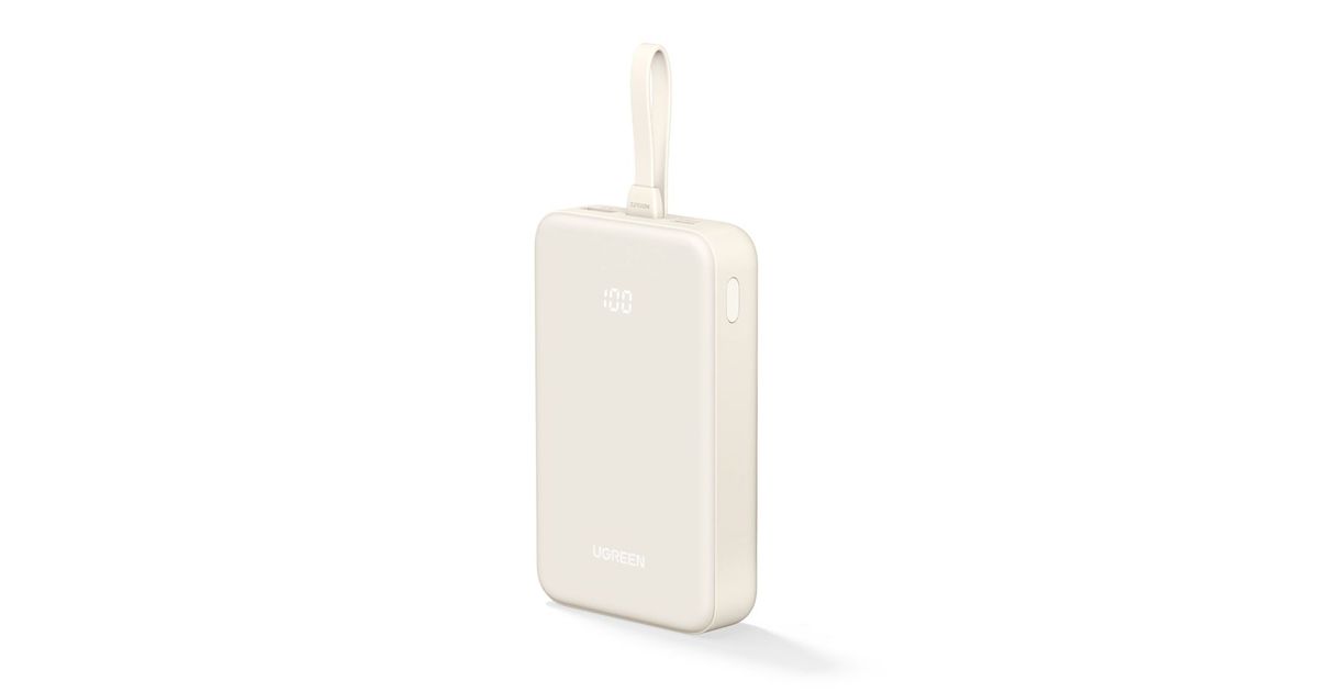 UGREEN 20000 mAh power bank with integrated USB-C cable white
