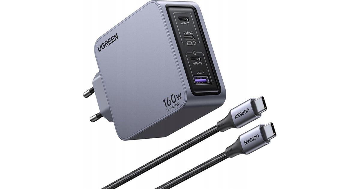 Ugreen laadija UGREEN Nexode Pro 160W GaN USB-A seinalaadija, 3xUSB-C hall