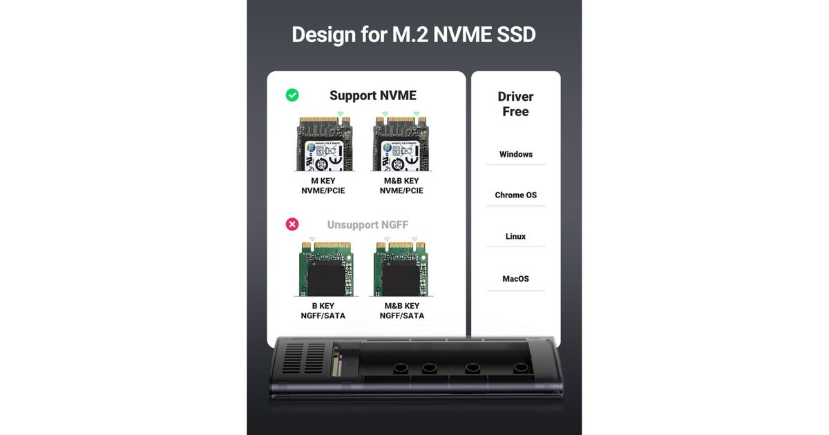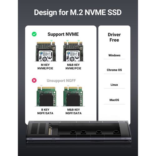 - Interface: M.2 NVMe M + B Key, compatible with 2230, 2242, 2260 and 2280