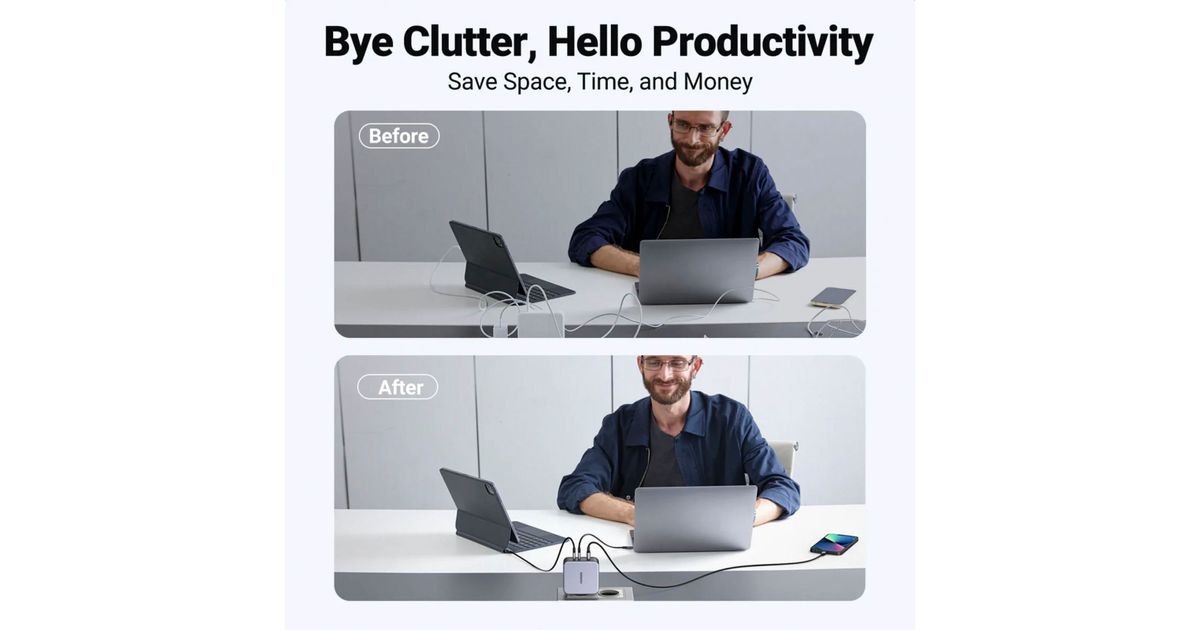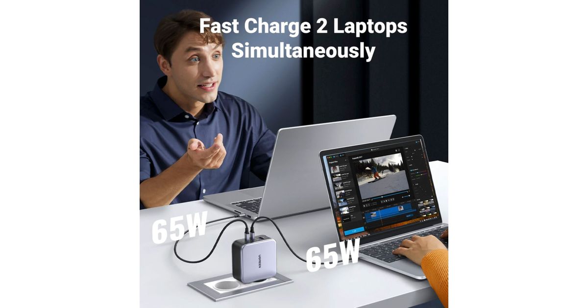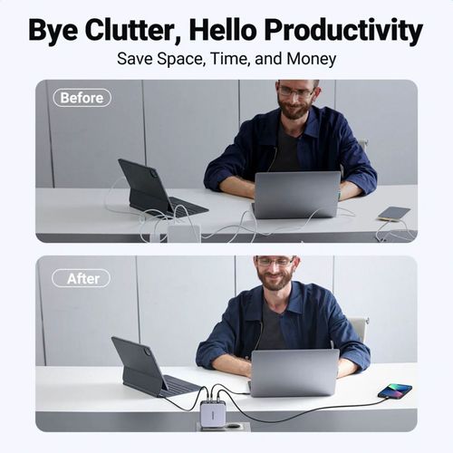 - Two USB-C ports and one USB-A port allows simultaneous charging of two laptops and a cell phone at the speed required for a multi-device user.