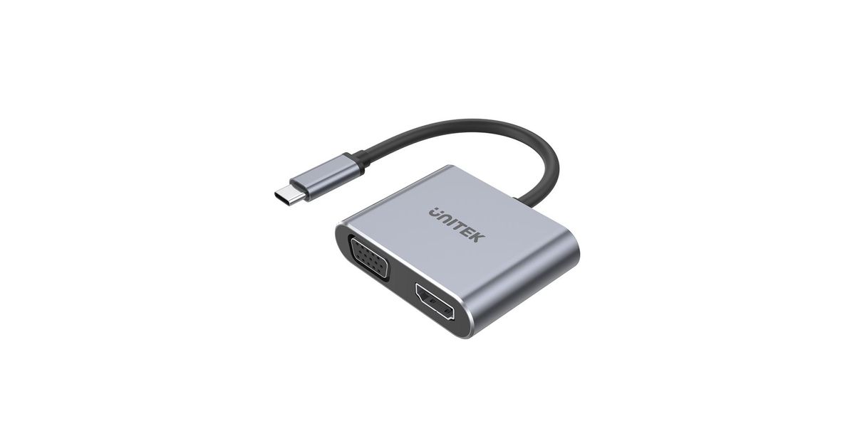 UNITEK D1049A, USB 2.0 Type-C, HDMI, USB 3.2 Gen 1 (3.1 Gen 1) Type-A, VGA, 480 Mbit/s, Hõbe, 100 W, USB