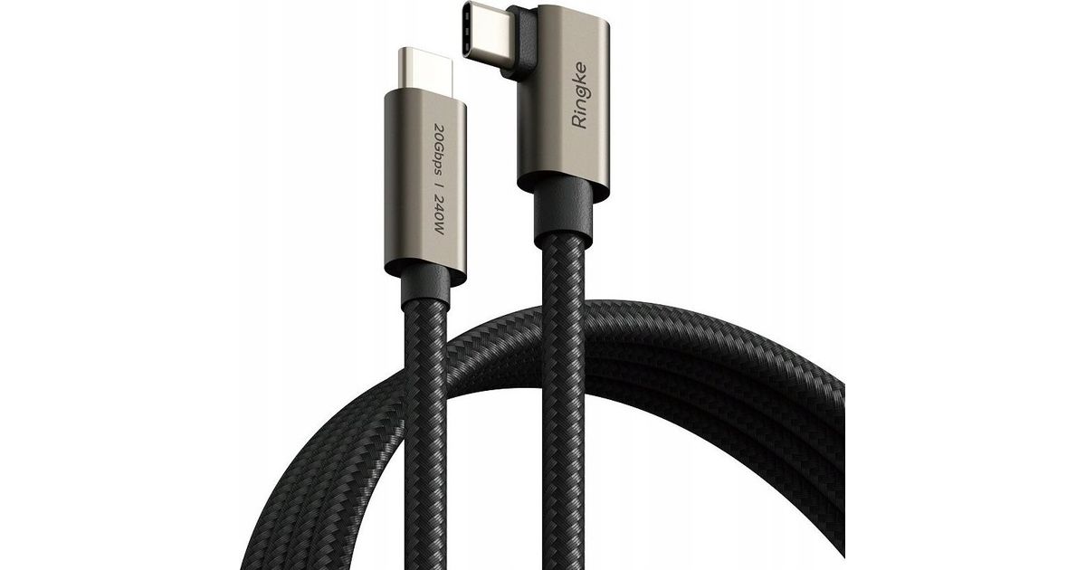 USB-C / USB-C Ringke USB 3.2 Gen 2x2 USB-C 90-kraadine kaabel PD 240W 200 cm must must
