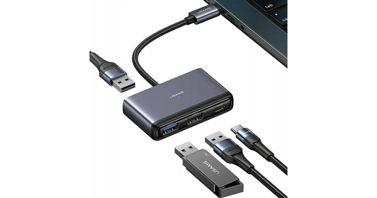 USB-jaotur Usamsi adapter USAMS US-SJ627 jaotur 4in1 USB-C / 2xUSB-A 2.0,USB-A 3.0,USB-C hall/tumehall
