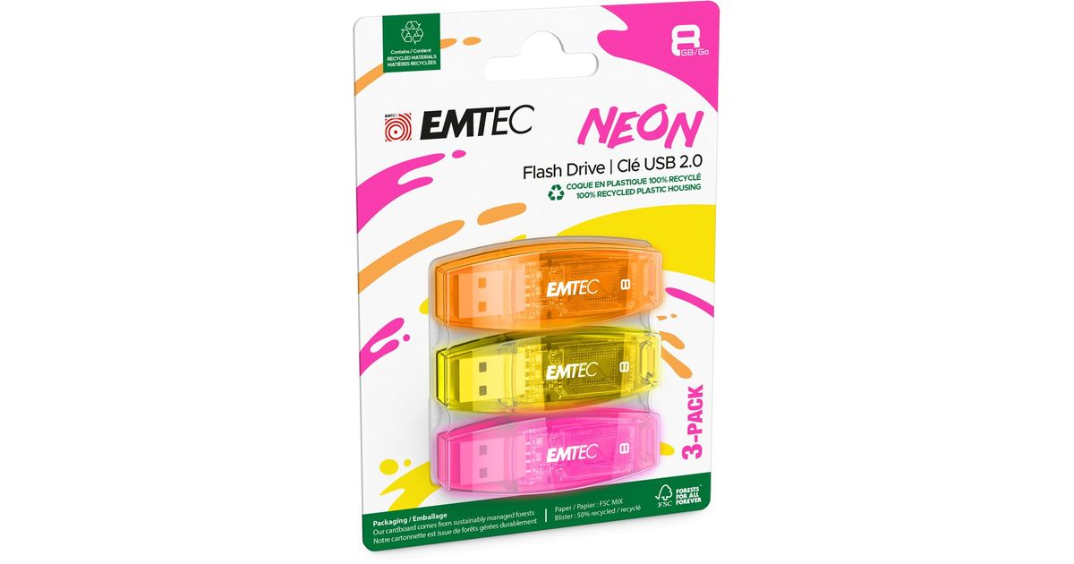USB2.0 C410 8GB Neon 3 pcs