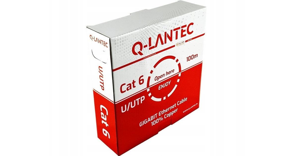 U/UTP Cable Cat.6, võrk, väänatud: PVC, ECA 4PR, 1GB/S (10 GB/S kuni 55M), 10 -aastane garantii, hall, 100 m - q -lantec