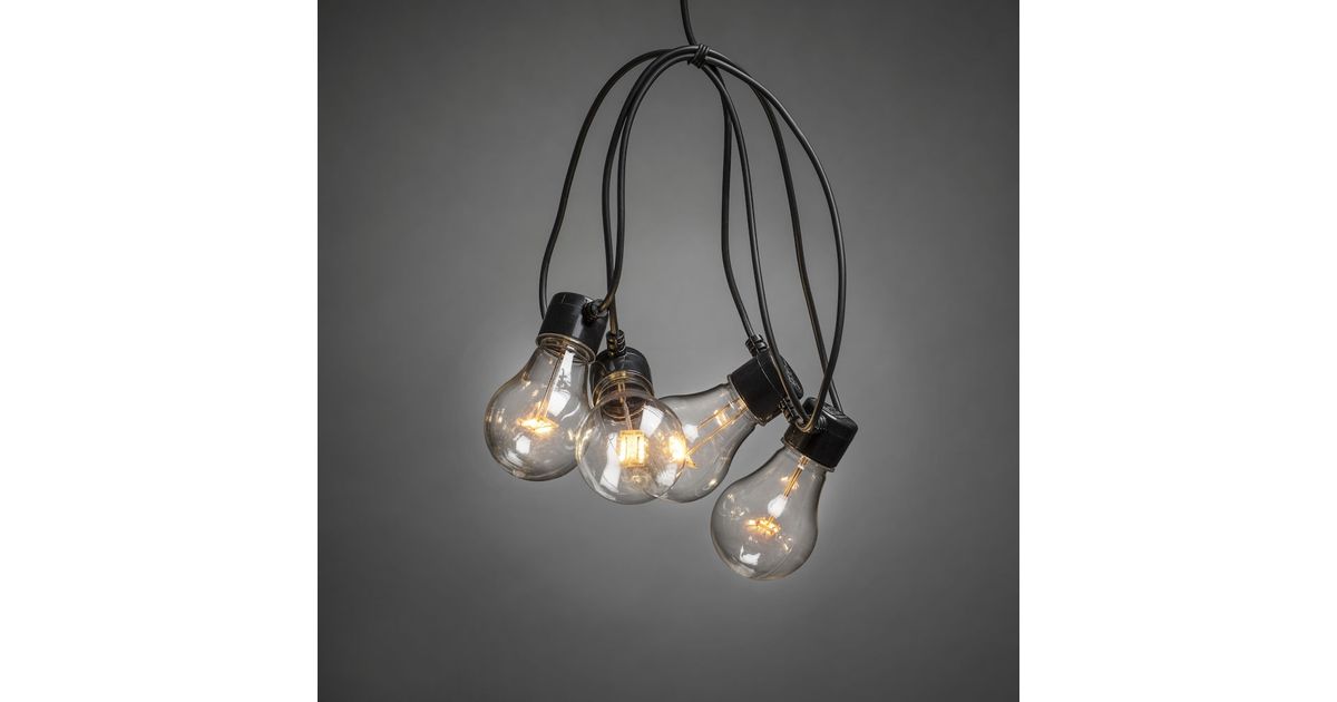 Valguskomplekt 10 merevaigukollast LED pirni E27, L-2000cm, trafo dimmeriga; 2 riputit; 10m must kaabel/ õue ja siseruumi