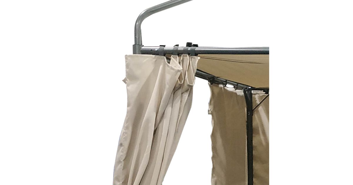 Tugipost: terastoru D57x1,3mm, kaldtala: D38x1,2mm, ripptala: 30x15mm. Ramm on kaetud pulbervärviga. Katuse kate: polüuretaankattega polüesterkangas 250g/m², küljed: polüesterkangas 160g/m². HOIATUS: varikatus peab olema fikseeritud aluspinnale. Varikatus ei ole mõeldud kasutamiseks tugeva tuule ja vihma korral. Müüja ei vastuta ekstreemsetest ilmastikutingimustest tulenevate kahjude eest.