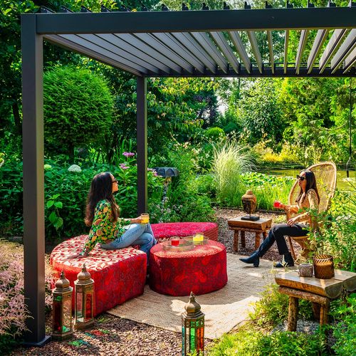 Varikatus MIRADOR-111 3x4xH2,5m, tumehall. Kaasaegne, elegantne ja funktsionaalne varikatus/aiapaviljon sobib kõikjale - aeda, terrassile, basseini äärde või auto varjualuseks. Varikatus on kasutatav aastaringselt. Uuenduslik lamellkatus on vändaga avatav ja suletav ning pakub kaitset ja varju nii kerge vihma, kui kõrvetava päikese eest. Suletud lamellidega katus on veekindel. Tänu sisse ehitatud vihmaveesüsteemile juhitakse vesi ohutult katuselt ära. Lisavarustusena on võimalik valida juurde sobivat tüüpi seinad või kardinad, andes sel viisil varikatusele erineva ilme ja funktsionaalsuse. Seinad ja kardinad ei kuulu komplekti, need on võimalik eraldi juurde tellida. Varikatuse põhikonstruktsioon on valmistatud alumiiniumist ja viimistletud tumehalli pulbervärviga. 4 tugiposti 111x111mm, horisontaaltala 140x75mm, galvaniseeritud terasest katuselamellid 173x30mm. Varikatuse täpsed mõõdud on 3012,5x3927x2508mm. Paigaldage varikatus stabiilsele ja tasasele aluspinnale ja kinnitage korralikult. Juhul, kui kasutate varikatus aastaringselt, jälgige, et katusele ei koguneks liigselt lund. Eemaldage kogunenud lumi esimesel võimalusel. Jälgige, et vee äravooluavad oleksid vabad. Enne talvehooaja algust kontrollige, et küljepostidesse ei oleks kogunenud vett. Jäätumise korral võib vesi poste kahjustada.