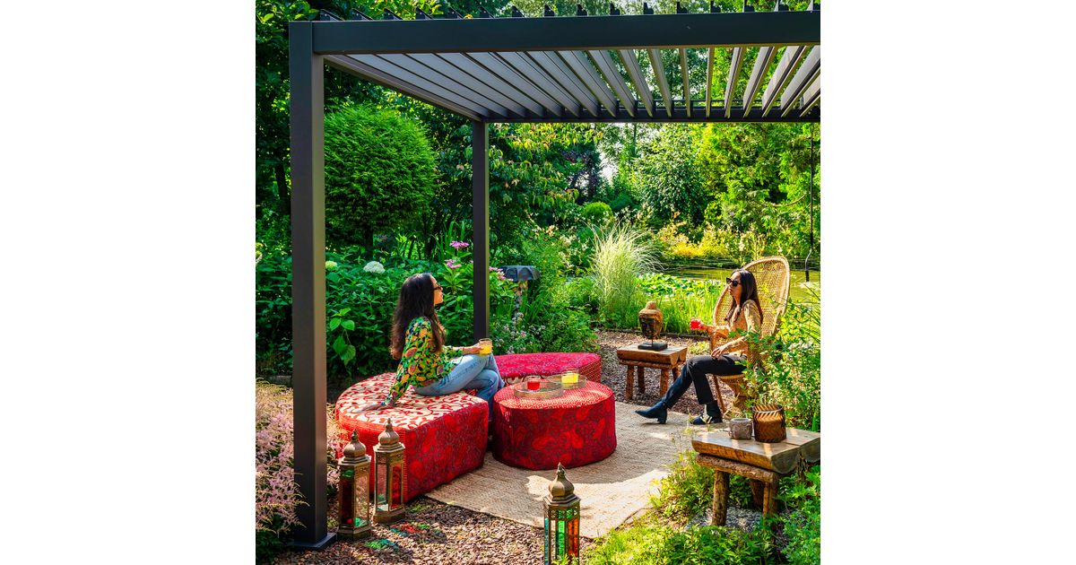 Pulbervärvitud teraskonstruktsioon. Küljepost 111x111mm, horisontaaltala 140x75mm, galvaniseeritud teraslamellid 173x30mm. Varikatusele on võimalik eraldi juurde osta sääsevõrgud (tootekood 084549479), polüester küljeseinad (tootekood 084549481) või textiline küljeseinad (tootekood 084549483). Küljeseinte ja sääsevõrkude kinnitamiseks on vajalik juurde osta kardinasiinid (tootekood 084549477).
