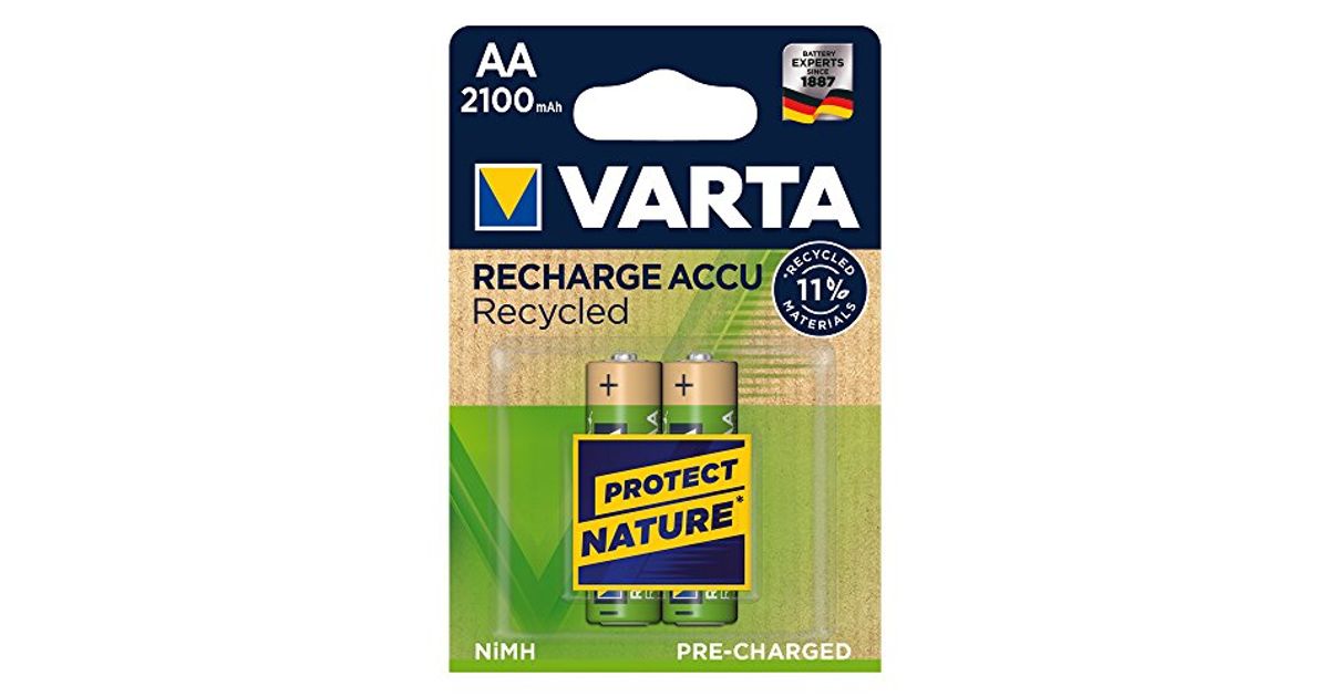 Varta 56816 101 402, Laaditav patarei, Nikkel-metallhüdriid (NiMH), 1,2 V, 2 tk, 2100 mAh, Kuld, Roheline