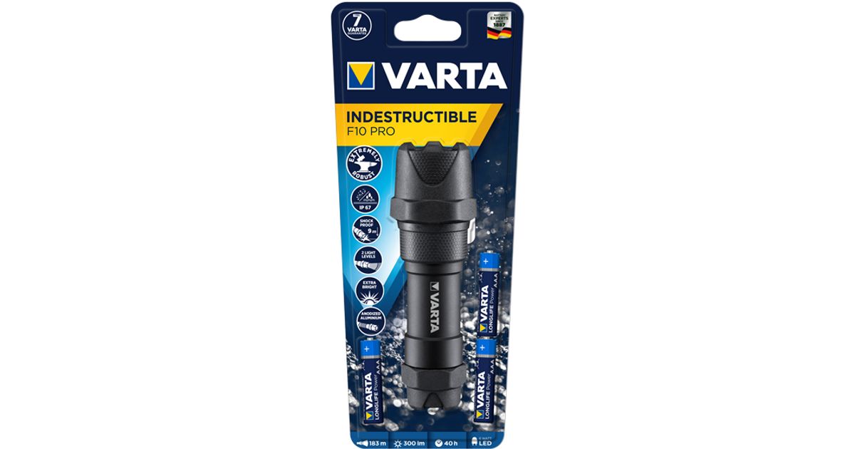 Varta INDESTRUCTIBLE F10 PRO, Käsitaskulamp, Must, Alumiinium, 9 m, IP67, LED