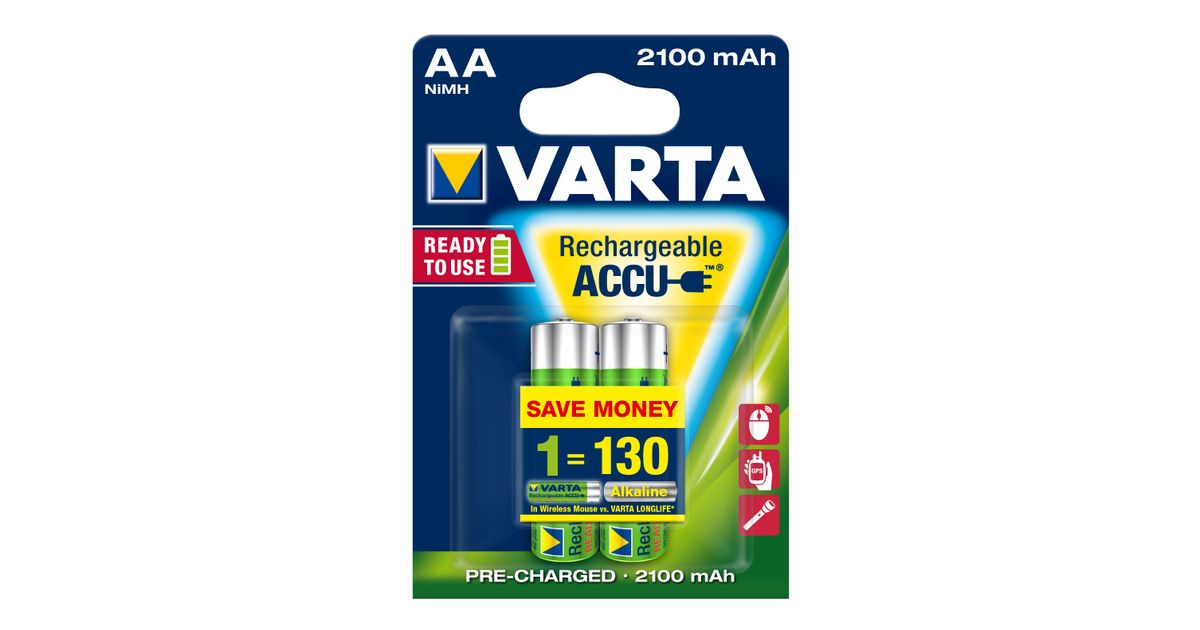 Varta Longlife, Laaditav patarei, AA, Nikkel-metallhüdriid (NiMH), 1,2 V, 2 tk, 2100 mAh